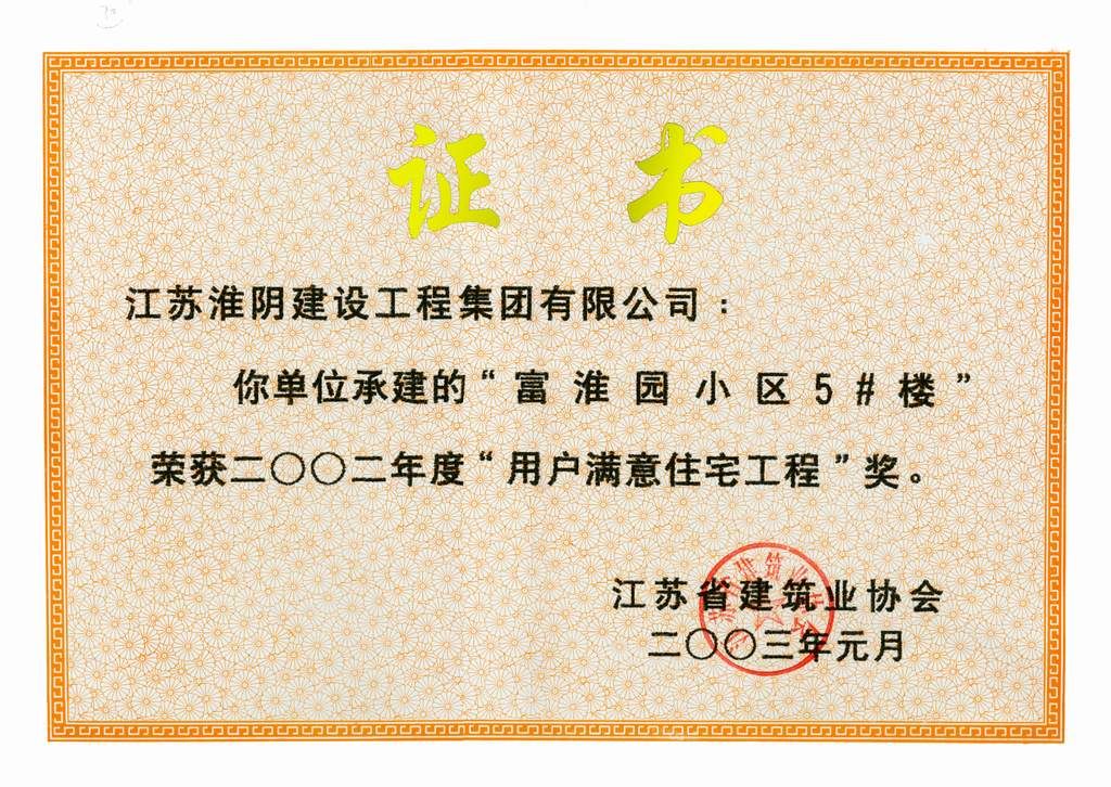 2002年度省用户满意住宅工程富淮园小区5#楼