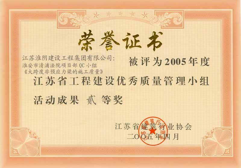 2005年省优大跨度非预应力梁的施工质量(二等奖)