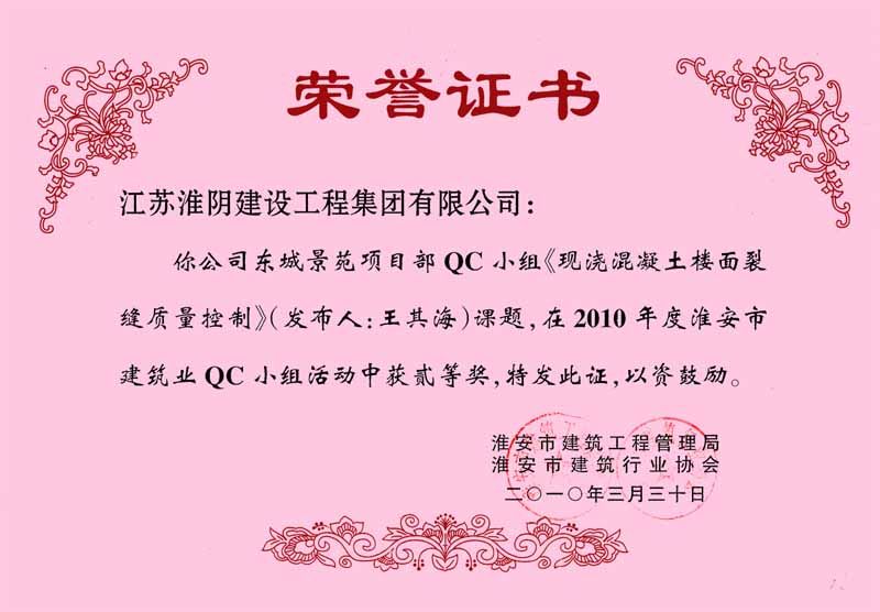 2010年市QC(二等奖)现浇混凝土楼面裂缝质量控制(东城景苑-王其海)