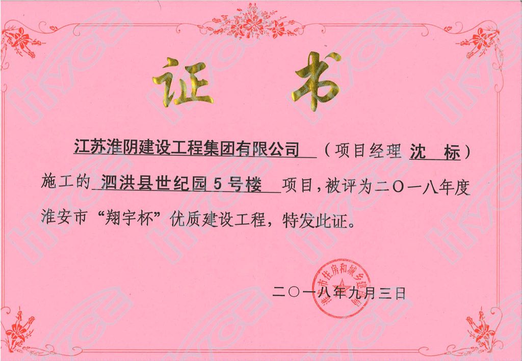 淮安市翔宇杯优质建设工程-泗洪县世纪园5号楼