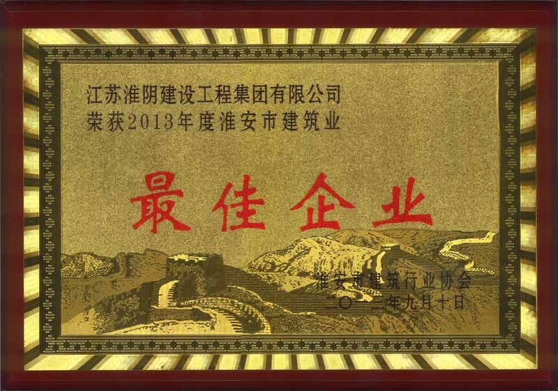 2013年淮安市建筑业最佳企业