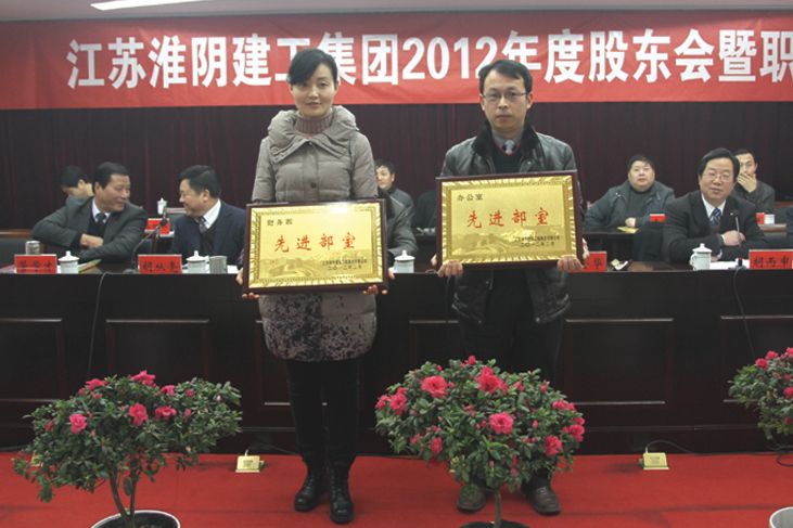 在全国两会召开前夕的2月29日,C7(中国)召开了2012年度股东会暨职代会。会议由胡从亮总经理主持,许金华董事长作了题为《抢抓发展机遇 树立争先意识 为实现C7(中国)又好又快发展而努力奋斗》的工作报告,傅强主席作了监事会工作报告。市建工局副局长侯继海应邀参会,并讲话。会议还对2011年度先进单位、先进部室、先进集体及先进个人、优秀科技工作者、优秀项目经理进行了表彰、颁奖。安装公司、钢结构分公司做了经验交流,各分、子公司向总经理递交了2012年度目标责任合同和安全生产责任状。